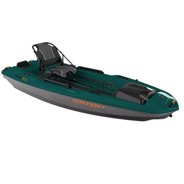 Der neue drehbare sitz Ergo360 mit verstellbarer Rückenlehne ist auf Gleitschienen montiert und kann bis zu 135 kg tragen. Das vollständig neigbare, um 360 Grad verschiebbare Drehsystem sitz ermöglicht es Ihnen, sich leicht in alle Richtungen zu drehen und bietet Ihnen den ganzen Tag lang optimalen Komfort. Das Kajak kann mit einem Gas- oder Elektromotor (bis zu 2,5 PS) betrieben werden. CATCH PWR 100 ist vorverkabelt, so dass Sie Ihre Batterie einfach im vorderen Fach verstauen können, während Sie Ihren Motor einfach am Heck anschließen können.