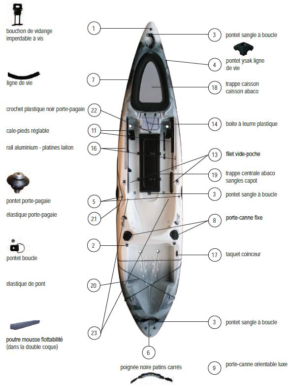 Außerdem besteht die Premium-Version dieses pack angelkajak Abaco 360 aus dem Boot, das mit dem sitz Premium angel der Marke Rtm Fishing und einem festen paddel mit einem Schaft aus Fiber (leichter als Aluminium) geliefert wird. ”