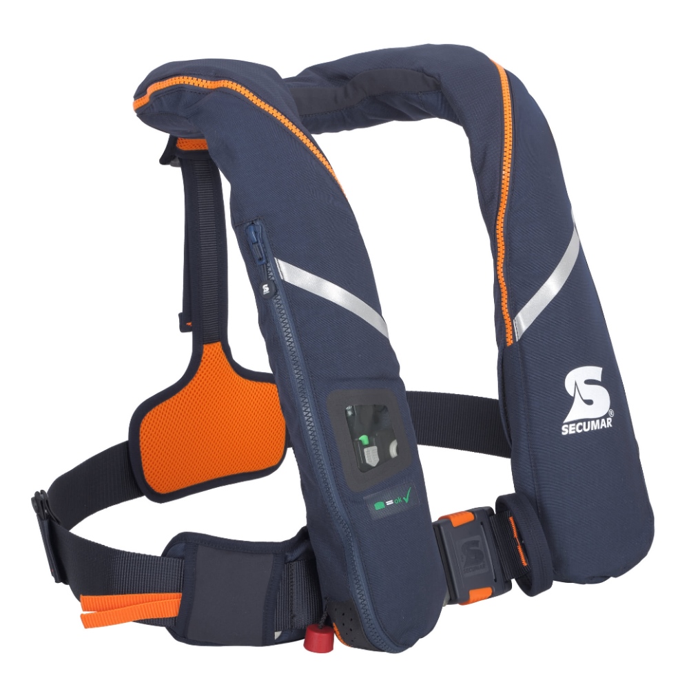 Für eine erweiterte Sicherheit auf See verfügt dieser schwimmweste über eine aufblasbare Hülle mit seitlichen "Flügeln", die im Notfall ein schnelles Umdrehen in die Rückenposition ermöglichen. Das SECUMAR "Click"-Verschlusssystem ermöglicht ein schnelles Anlegen und müheloses Ausziehen und garantiert eine hohe Qualität und Zuverlässigkeit.