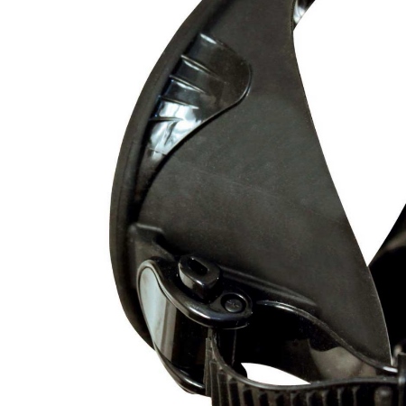 Mit speziellen Griffbereichen an der Oberseite der Schürze und dreidimensional verstellbaren Schnallen ist die Anpassung dieser Maske einfach und präzise und bietet ein Unterwassererlebnis ohne Kompromisse zwischen Ästhetik und Leistung.