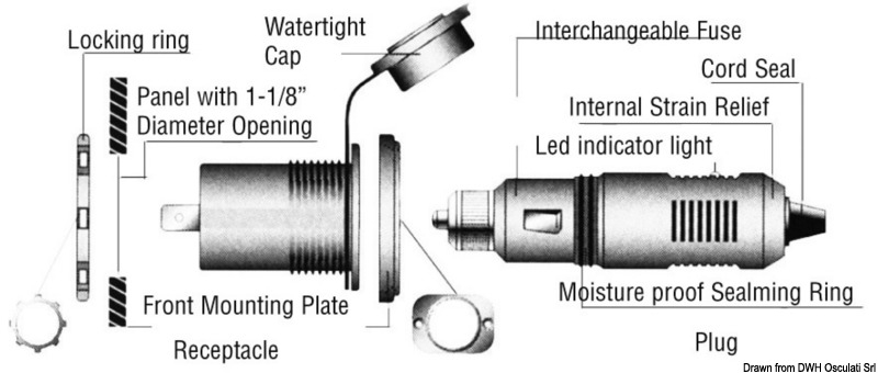 Montagesockel mit Mutter oder Platte mit 2 Schrauben. Standard für Zigarettenanzünder, Mobiltelefon.