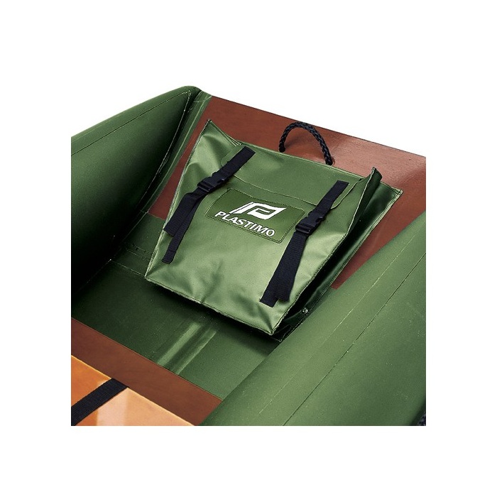 Grüne PVC-Tasche mit Klettverschluss und 2 verstellbaren Riemen.
