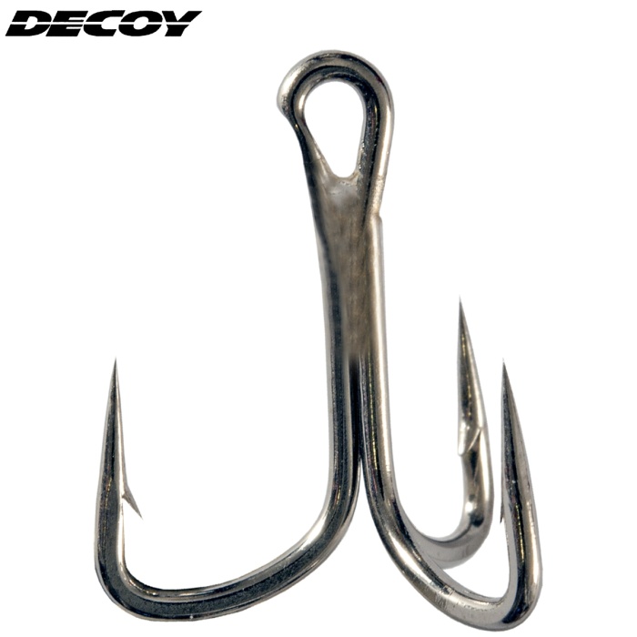 Dreifachhaken von hoher Qualität mit einer bemerkenswerten Schärfe und einer erstaunlichen Stärke. Er zeichnet sich auch durch die Form der Öse aus, die abgeflachte Abschnitte aufweist, um das Hinzufügen oder Entfernen von sprengringe zu erleichtern.