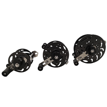 Erhältlich in Kapazitäten von 30, 50 oder 70 Metern für 1,5-mm-Draht - In schwarzer Aluminiumausführung - Ultra leicht und kompakt - einziehbare Handkurbel zur Reduzierung des Platzbedarfs