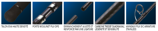 Länge 274 bis 290 cm - Leistung 20 bis 80 gr - Steckverbindung 2 Stränge - Blank Carbon High Module