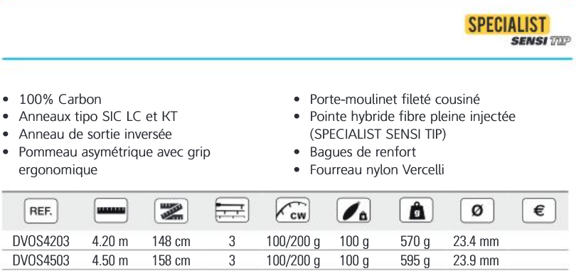 Länge 420 bis 450 cm - Leistung 100/200 gr - Steckverbindung 3 Stränge - Blank Carbon