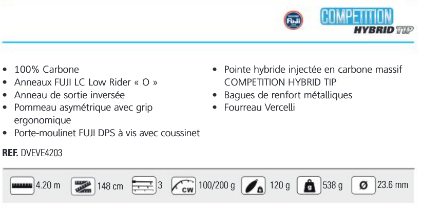 Länge 420 cm - Leistung 100/200 gr - Steckverbindung 3 Stränge - Blank Carbon