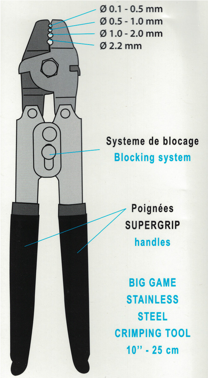 Zange zum Quetschen von doppelten klemmhülsen (oder Quetschröhren) für die Herstellung von Stapeln oder vorfach Anti-Zahn (Shock-tippet) aus Fluorkohlenstoff, Stahl mit nylon oder Titandraht für das Angeln mit fliege auf Raubfische im Süßwasser (hecht, Musky, Wels, usw.) und im Salzwasser (Karausche, Rotkarpfen, usw.)