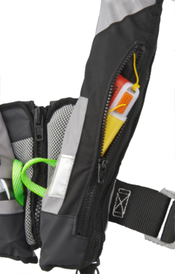 Modular: Reißverschlusstasche für zubehörteile (Leuchtfeuer, chemilumineszierender Stab, elektronischer Peilsender...). Zubehörteile nicht im Lieferumfang dieses schwimmweste enthalten.