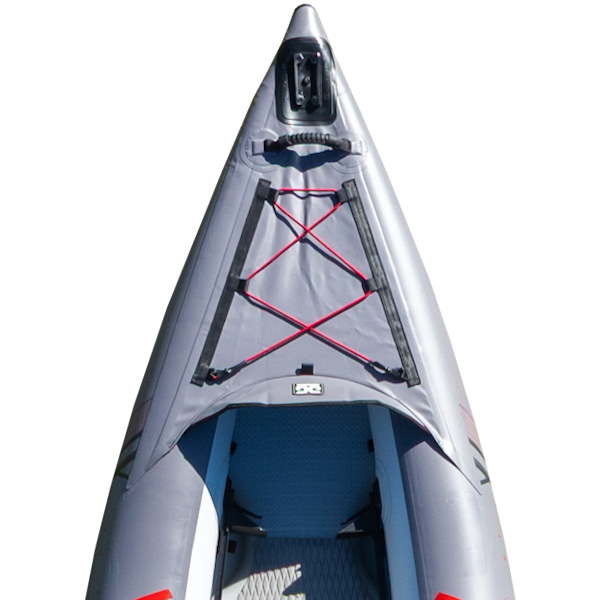 Sie befindet sich am Bug des Kajaks und wirkt wie ein Deflektor, der Spritzwasser beim Fahren, insbesondere bei Gegenwind oder leichtem Wellengang, wirksam reduziert.