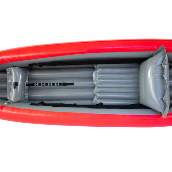 Aufblasbares Nitrilon-Kajak • 1 Platz • Länge 330 cm • Breite 80 cm • Maximale Belastung: 130 kg • Gewicht: 12,0 kg • 3 aufblasbare Kammern • Abnehmbare Finne