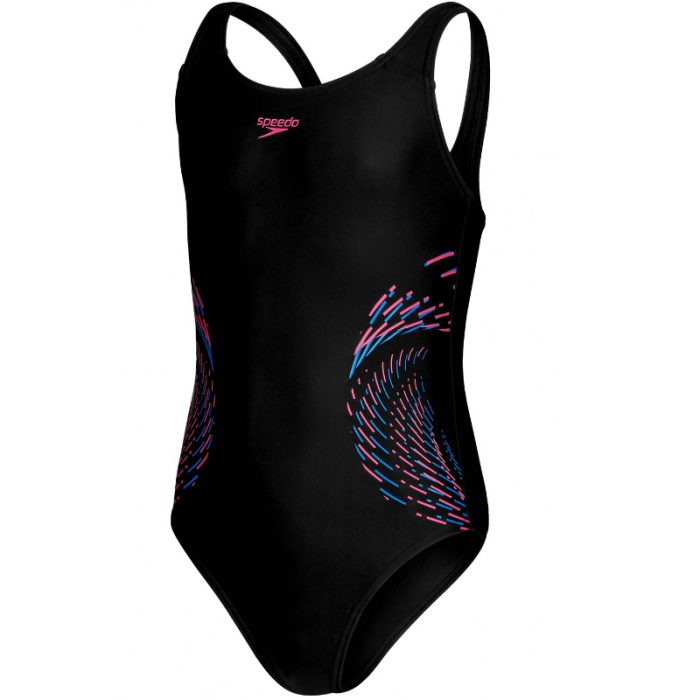 Badeanzug Plastisol Placement Muscleback Speedo Black/Rose Violet/Bondi Blue