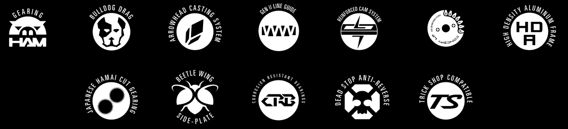 Das Low-Friction-Bremssystem gibt dem Angler außerdem die Möglichkeit, es feiner und angemessener einzustellen, unabhängig vom Ködergewicht. Diese Rolle ist vollgepackt mit einzigartigen und patentierten 13 Fishing Features, wie der Arrowhead Schnurführung, dem Beetle Wing Schnellzugriffsflansch und der integrierten KeepR Köderhakenvorrichtung.