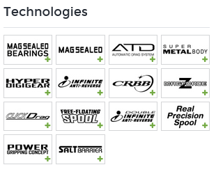 | Saltiga 1515 HLSJ | Kapazität-m/en geflochtene schnur 500/PE2 Rückgewinnung-cm 100 Brems-Kg 8 Gewicht-g 460 |