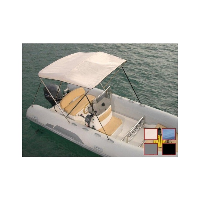 | Technische Details : | • 3 Bögen Ø 22 mm - glänzendes Edelstahlrohr • Beschichtetes Tuch, Farbe nach Wahl blau oder weiß • Gurte • Befestigungsplatten aus Edelstahl? • Hülle von lagerung |