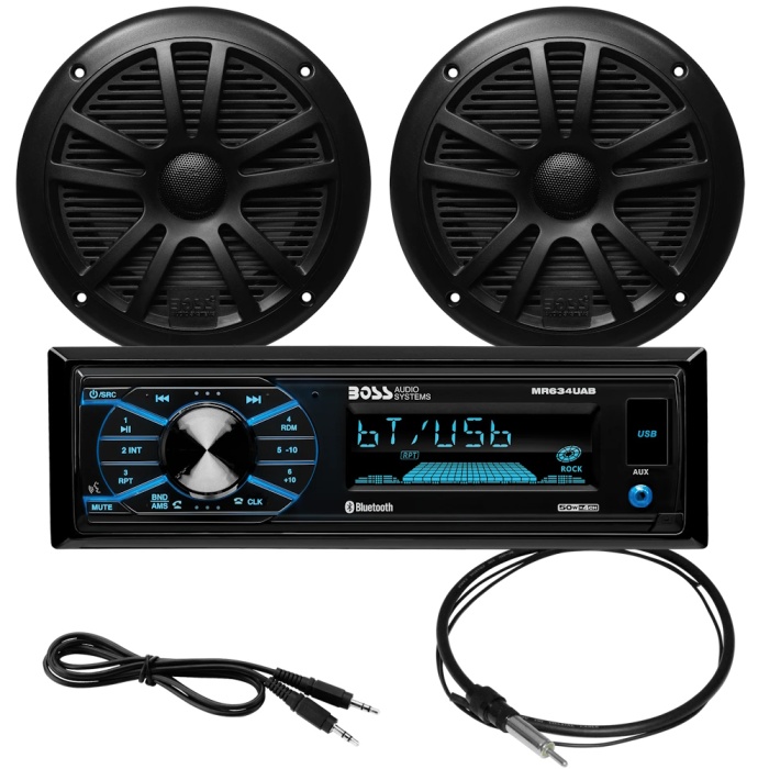 Bootsradio - 4 x 50W - AM/FM/Bluetooth/USB - integriertes Bluetooth - mit Funkantenne/2 geliefert Lautsprecher