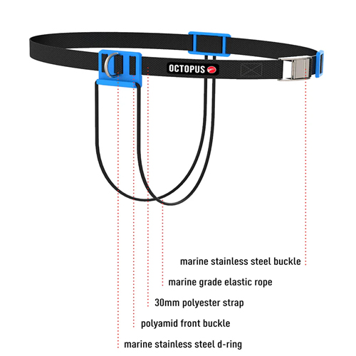 CNF-Gürtel Octopus Freediving Blau mit Schnellverschluss aus Edelstahl