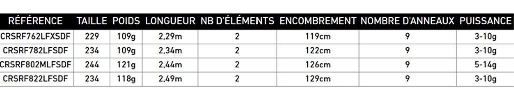 Länge 229 bis 244 cm • Leistung 3 bis 14 gr • Steckverbindung: 2 Stränge • Kohlefaserblank HVF (High Volumen Fiber)