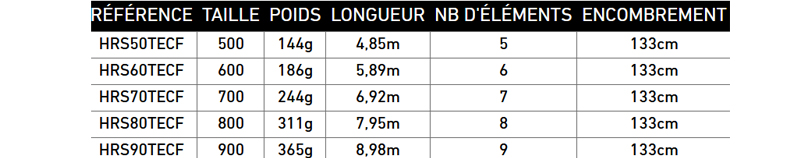 Länge 500 bis 900 cm • Leistung 3 - 5 gr - teleskopisch • Kohlefaserblank HVF