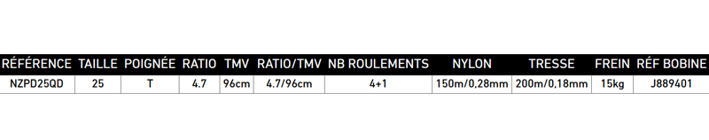Einholung 96 cm • Gewicht: nc gr • Inhalt: 150m/0.28 • Bremse 15 Kg