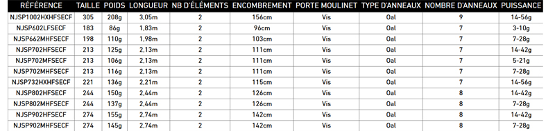 Länge 183 bis 305 cm • Leistung 3 bis 56 gr - Steckverbindung • Kohlefaserblank