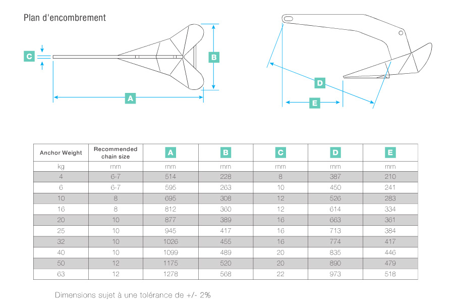 Hergestellt in FrankreichDer Delta-Anker besteht aus hochmanganhaltigem Stahl und bietet maximale Festigkeit. Sein einzigartiges Profil und sein gewichteter Anteil ermöglichen eine einfache Freigabe. Sein sehr tiefer Schwerpunkt und seine besondere Geometrie garantieren einen sofortigen Halt.