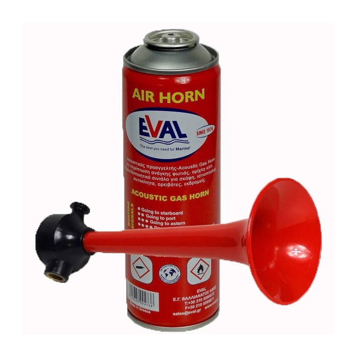 Gasnebelhorn, wird mit Flüssiggas betrieben, das in dem abnehmbaren Patrone enthalten ist. Fassungsvermögen 300ml.
