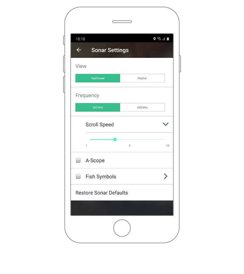 Wählen Sie aus den einfach zu interpretierenden Modi "Traditionelles 2D-Echolot" und "Eisfischerei-Blitzer" und passen Sie die Einstellungen für Empfindlichkeit, Reichweite usw. an.