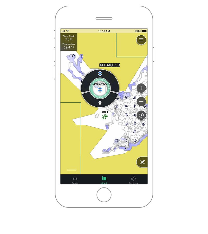 Mit dem eingebauten GPS können Sie Ihre eigenen Quickdraw-Bathymetriekarten mit Isobathen im Abstand von 30 cm erstellen, damit Sie Ihre besten Angelplätze wiederfinden (und vielleicht auch teilen) können.