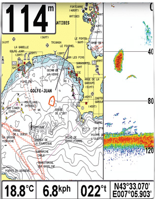 - Zeigt mehrere CHIRP-Sonarbereiche auf einem einzigen Display an