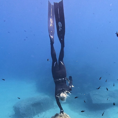 T700 Carbon-Flossen • Neoprenschuhe 250 • Wasserschienen mit abgerundetem Querschnitt • Blätter mit mattem Finish • Neuer "Reverse Parabolic • -Hebel - Leistungssteigerung • Höhere Beschleunigung und Geschwindigkeit