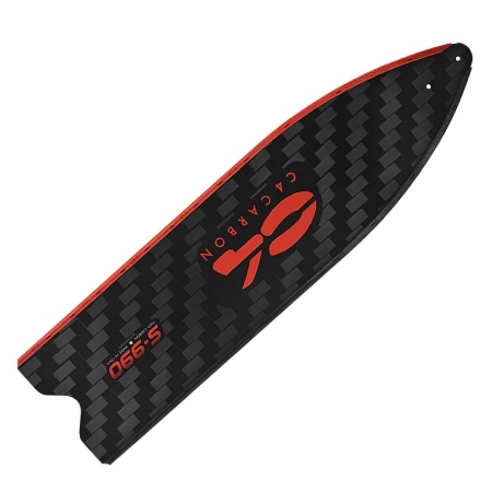 Die Flosse wird mit einem rot dekorierten Kohlefaserfinish hergestellt und profitiert von einem neuen Verfahren, bei dem die Kohlefasern allmählich absinken, ein technisches Merkmal, das für ihre Effizienz unerlässlich ist