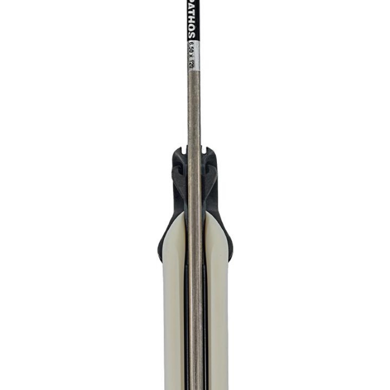Der speerfischen harpune ist mit einer neuen offener kopf ausgestattet, die es den gummibänder ermöglicht, parallel zu le tube und harpune zu arbeiten, was die leistung der gummibänder für eine optimale Leistung vervielfacht. Der speerfischen harpune hat einen pfeil aus rostfreiem Sandvik-Stahl mit einem Durchmesser von 6,50 mm, mittlerer Steifigkeit, einem einzigen widerhaken und einer dreiseitigen Spitze. In Verbindung mit den neuen farbigen wishbone von nylon sorgt sie für perfekte Präzision unter Wasser. Der speerfischen harpune ist auch mit einem grauen Ø18 mm TNT rundes gummiband ausgestattet, der eine extreme leistung für präzise Schüsse bietet.