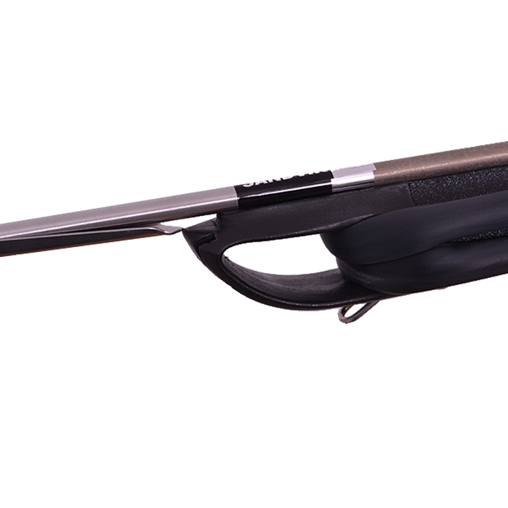 Der Harpune Pathos Open Pro glänzt durch seine Präzision dank seiner offener kopf doppel gummibänder und seiner pfeil mit Ø 6,75 mm aus Sandvik, Tri-Cut mit shark fins, mit einem einzigen widerhaken. Die doppel gummibänder mit Ø 16,0 mm, gebunden, sorgen für eine konstante leistung und Zuverlässigkeit, so dass Sie unfehlbare Schüsse abgeben können.