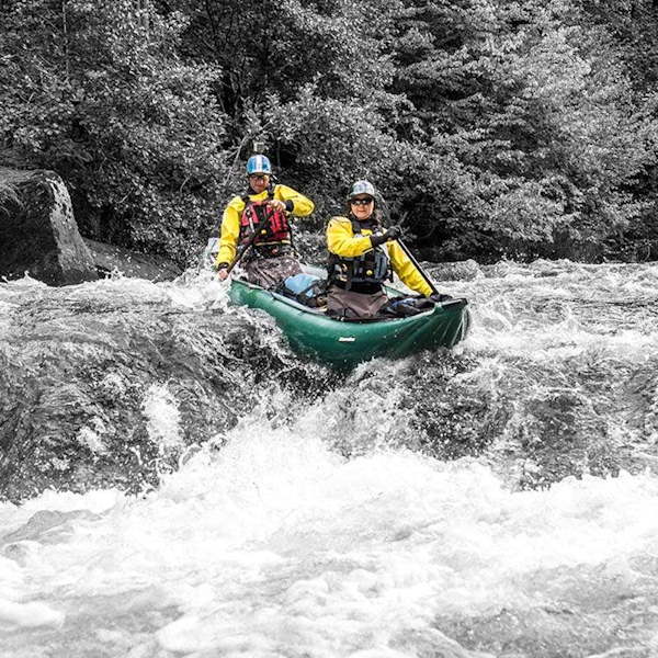 Sein robuster Rumpf und sein selbstlenzender Boden ermöglichen ein schnelles Ablaufen des eindringenden Wassers, was in Wildwasser von entscheidender Bedeutung ist.