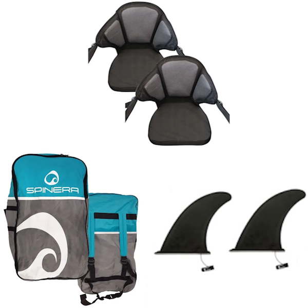 Es wird komplett mit einemrucksack, 2 finnen, 2 sitze aus hochdichtem Schaumstoff und 2 integrierten paddel geliefert, sodass Sie sofort loslegen können.