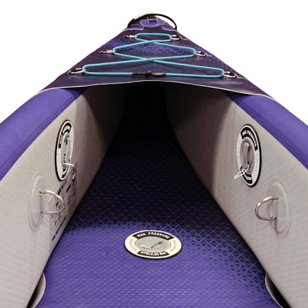 festes kajakDer maximale Druck beträgt 8 PSI (0,55 bar). Bei Erreichen dieses Drucks nehmen die Kammern die gewünschte Form an und sorgen für eine optimale Passform. Bitte beachten Sie, diese Kammern nicht weiter aufzublasen, um das Risiko von Undichtigkeiten im Laufe der Zeit zu vermeiden.