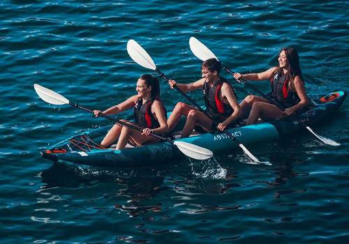 Wählen Sie Ihr kajak aufblasbar 3 personen, um mit der Familie, als Paar mit einem Kind oder mit Freunden zu paddeln. Das kajak aufblasbar 3 personen eignet sich ideal für ruhige Meere, Flüsse oder Seen und ist perfekt für längerer ausflug, fahrt oder den