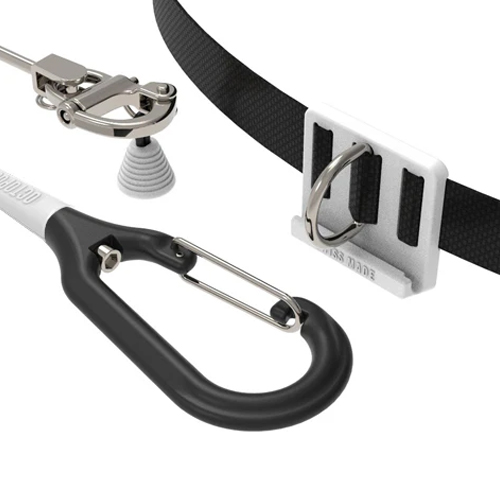 - Karabiner haken: Carbon Composite, ultraleicht und stark.