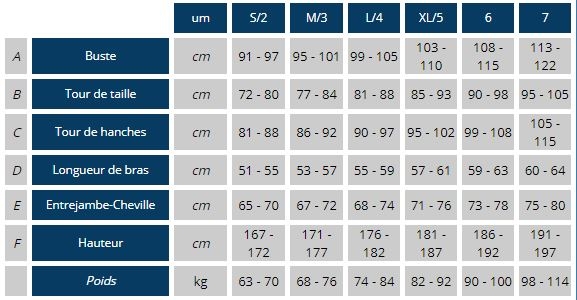 Verwendung T° +25°C • Innen gespaltenes und außen Jersey • Flexibilität 4/5 • Wasserabweisendes Neopren • Knieschutz • Brustpolster sehr dick • Nylon Außenseite ist ultra-stretch und bietet sehr hohen Komfort