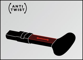 Das Anti-Twist-System mit seinem flachen Abschnitt an der Verlängerung mit einem angepassten Klampen-System macht Schluss mit unnötigem Aufwand, um das Einstellsystem zu verriegeln. Rudern Sie mit Zuversicht - weder Ihr Schaft noch Ihr Griff werden sich bewegen