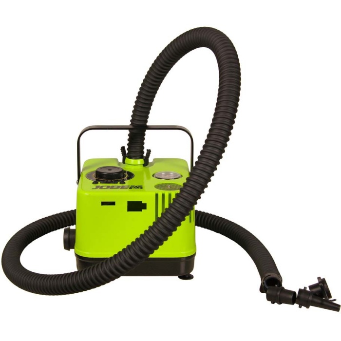 Die Jobe Elektropumpe ist ein robustes und tragbares Modell, das bis zu 1,5 Bar (20 PSI) Druck aushalten kann, um Ihren Kiteboard-Kite, Ihr Stehpaddelbrett oder Ihr Schlauchboot mühelos aufzublasen.