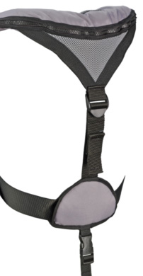 Kragen aus mesh, der sichder Form der Schultern anpasst, Rückenpolster aus Schaumstoff, retroreflektierendes Band.