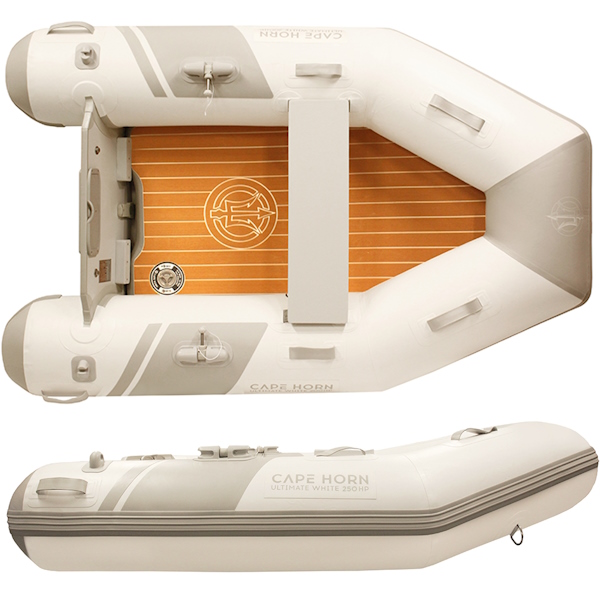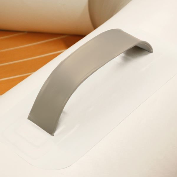 Das schlauchboot Cape Horn Ultimate White ist mit einer robusten Schutzleiste ausgestattet, die die Haltbarkeit und Stoßfestigkeit erhöht. Sie ist am Rand der Schwimmer angebracht und spielt eine wichtige Rolle beim Anlegen, indem sie Reibung und Stöße gegen Kais, Pontons oder andere Boote abfängt.