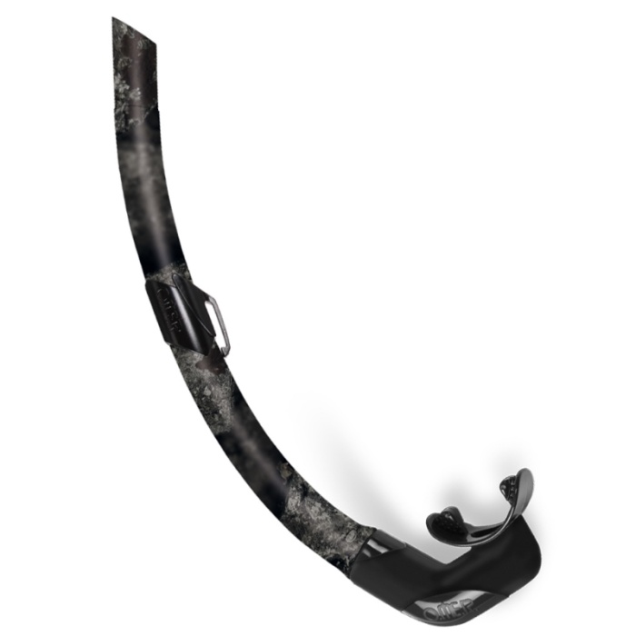 Der Zoom-Schnorchel mit hochauflösender 3D-Tarnung ügt sich harmonisch in den Stil der Stone-Serie-Anzüge und der Wolf-Masken ein.