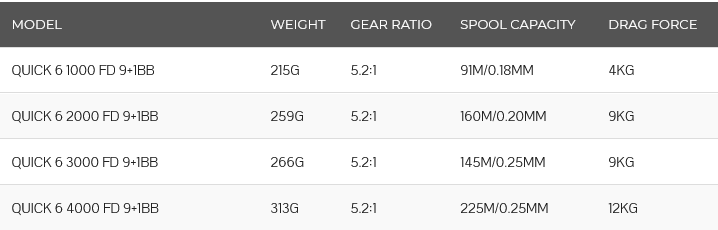 Die Quick® 6-Serie ist die neueste Entwicklung im gesamten Quick®-Programm. Entwickelt in Deutschland mit den besten Komponenten für erfahrene Angler. Diese Angelrolle ist das perfekte Werkzeug für die technische See- und Süßwasserfischerei. Robust genug, um auch den wildesten Fischen zu widerstehen. Mit einem progressiven Bremssystem sind Sie bereit, den Fisch Ihres Lebens zu fangen.