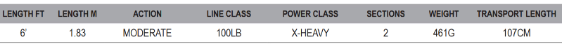 Länge: 183 cm • Gewicht: 461 gr • Leistung: 80-100 lbs • endstück • Blank: Carbon + X-wrap