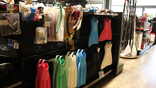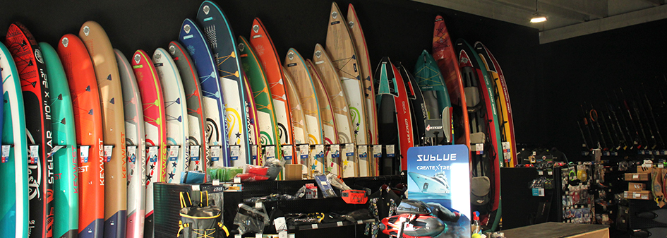 Entdecken Sie die verschiedenen Bereiche in unserem Store: Stand Up Paddle, Kajak, Speerfischen, Apnoetauchen und Wasserwandern.