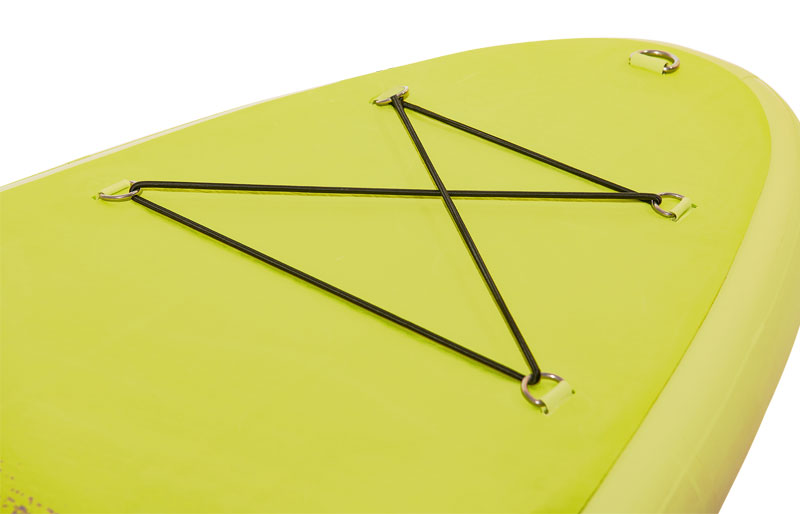 Das Gummibandsystem befindet sich im Gegensatz zu anderen Boards auf der Rückseite. Die elastische Kordel ermöglicht es, ein wasserdichte tasche sicher zu lagern, ohne Angst haben zu müssen, dass es ins Wasser fällt.