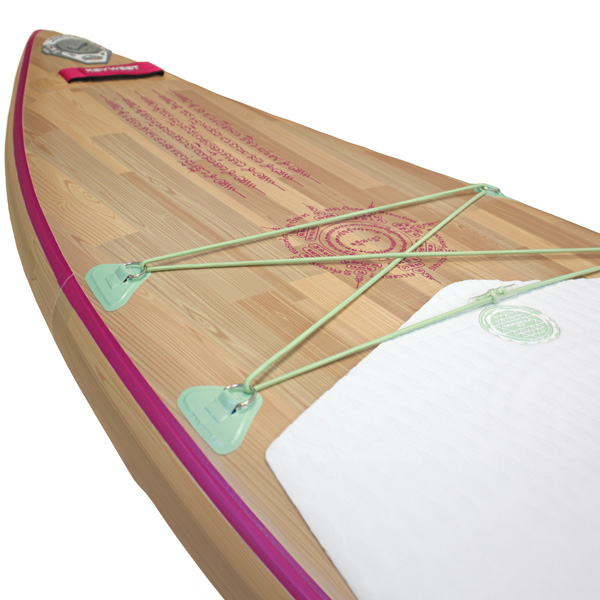 Das board verfügt über zwei elastische Ladungssicherungen: eine vorne und eine hinten.